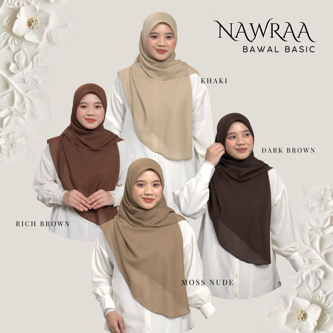 Bawal Nawraa ini hadir dengan 2 bidang iaitu bidang 50 dan 55 yang sesuai untuk MUSLIMAH MODEN yang ingin bergaya sambil menutup aurat. Ia direka khas untuk semua tingkat umur terutama remaja yang KURANG MASA untuk bersiap .