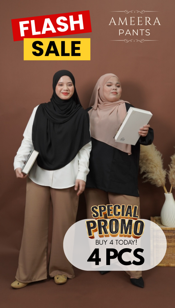 Meera pants ini merupakan seluar palazo versi MUSLIMAH yang sangat sesuai dipakai di mana jua. Cutting yang Loose yang tidak menampakkan bentuk kaki serta MATERIAL yang sejuk dan selesa untuk aktiviti harian.